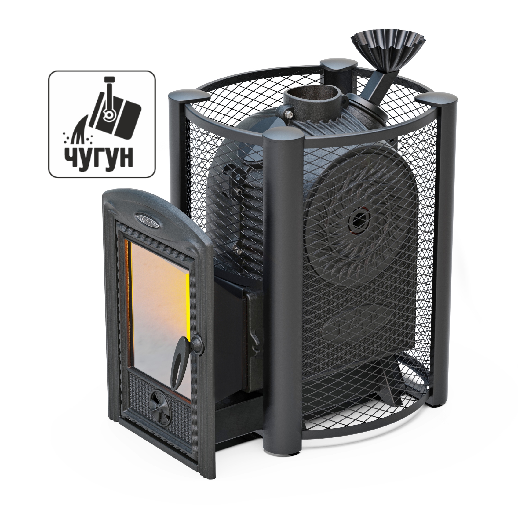 Чугунная печь для русской паровой бани с внутренней закрытой каменкой из чугуна или нержавеющей стали